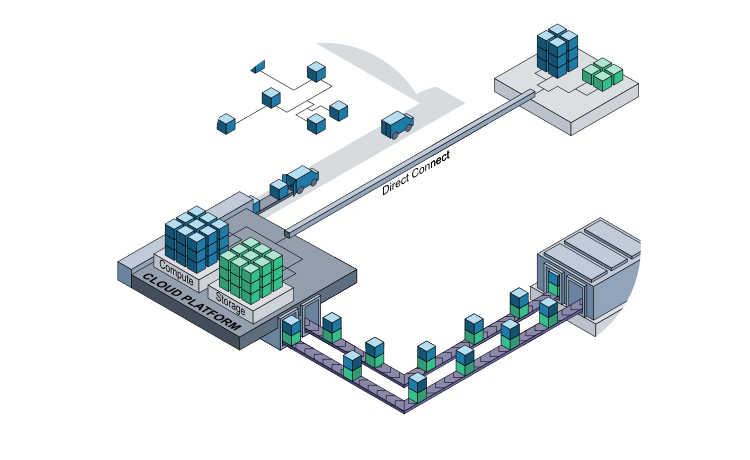 Support distributed sites with segregated accounts, direct connects, and common services shared across multiple tenants.